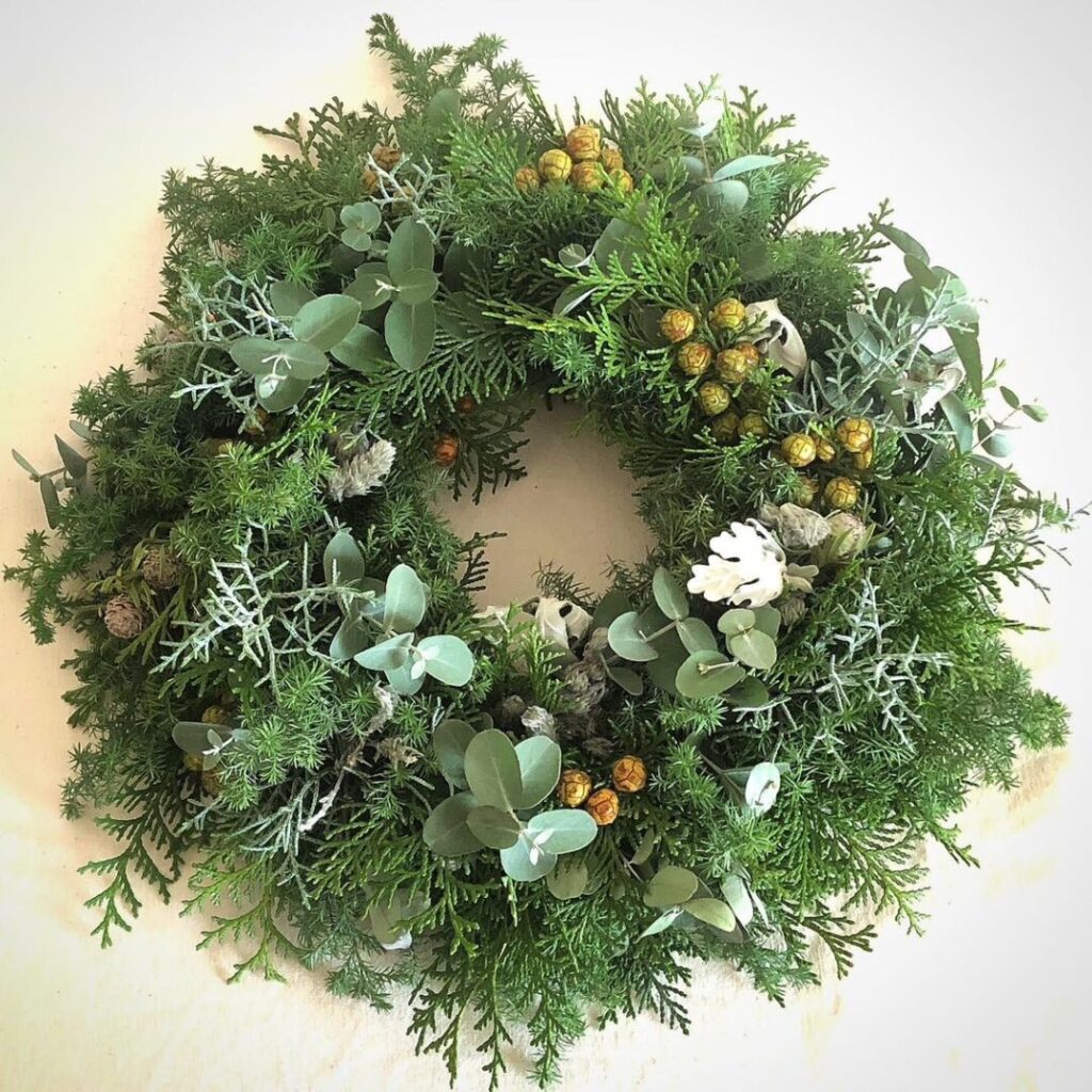 フレッシュグリーンを使用した、香りも楽しめるクリスマスリースづくり。