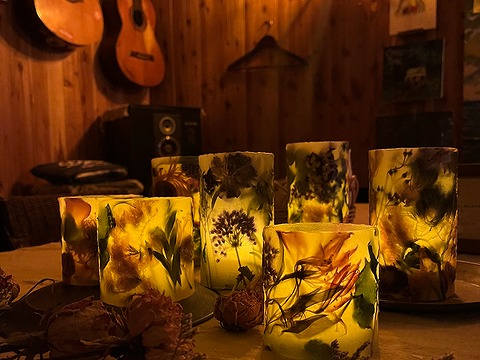カフェならではの落ち着いた雰囲気の中、花の香りとキャンドルの灯りに包まれながら、手仕事を楽しむ午後のひとときが過ごせます。