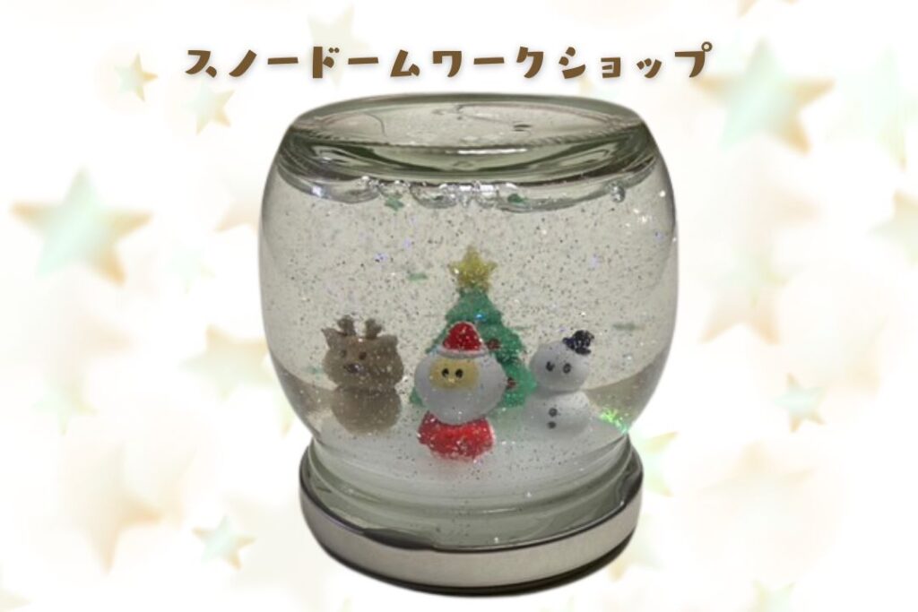 今年のクリスマス会は、クリスマスお弁当付きでスノードームを作るワークショップをするそうです。